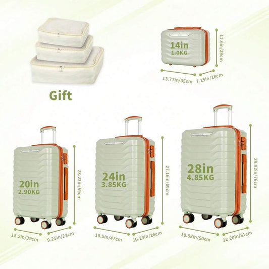 UUH 28-inch Luggage Family Travel 4-Piece Set – Buy 1 Get 3 Free (Includes 24/20/13-Inch)-Orange