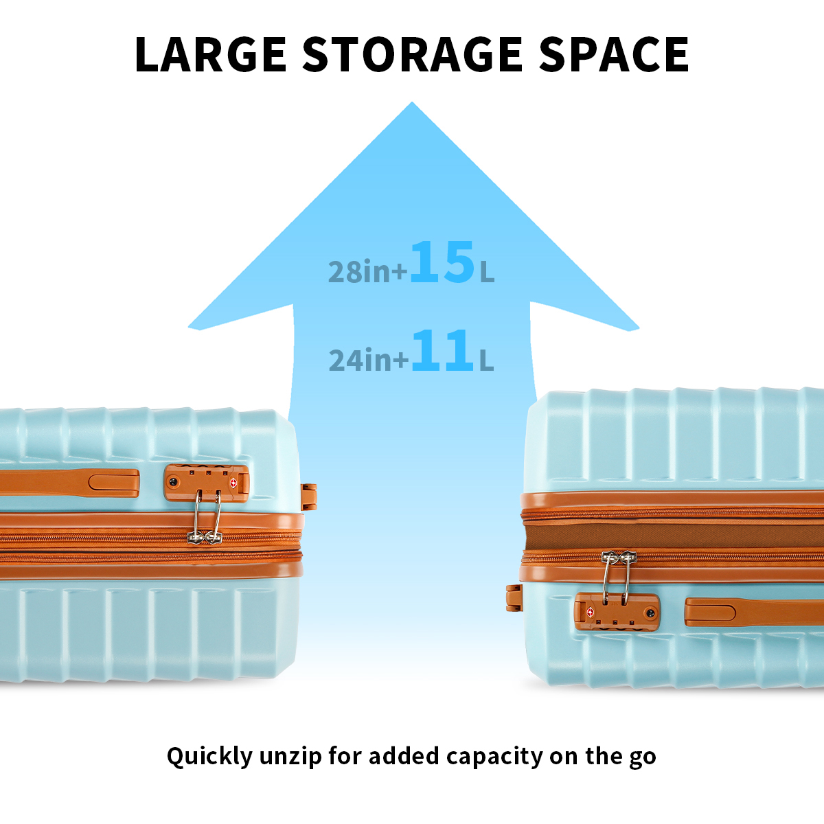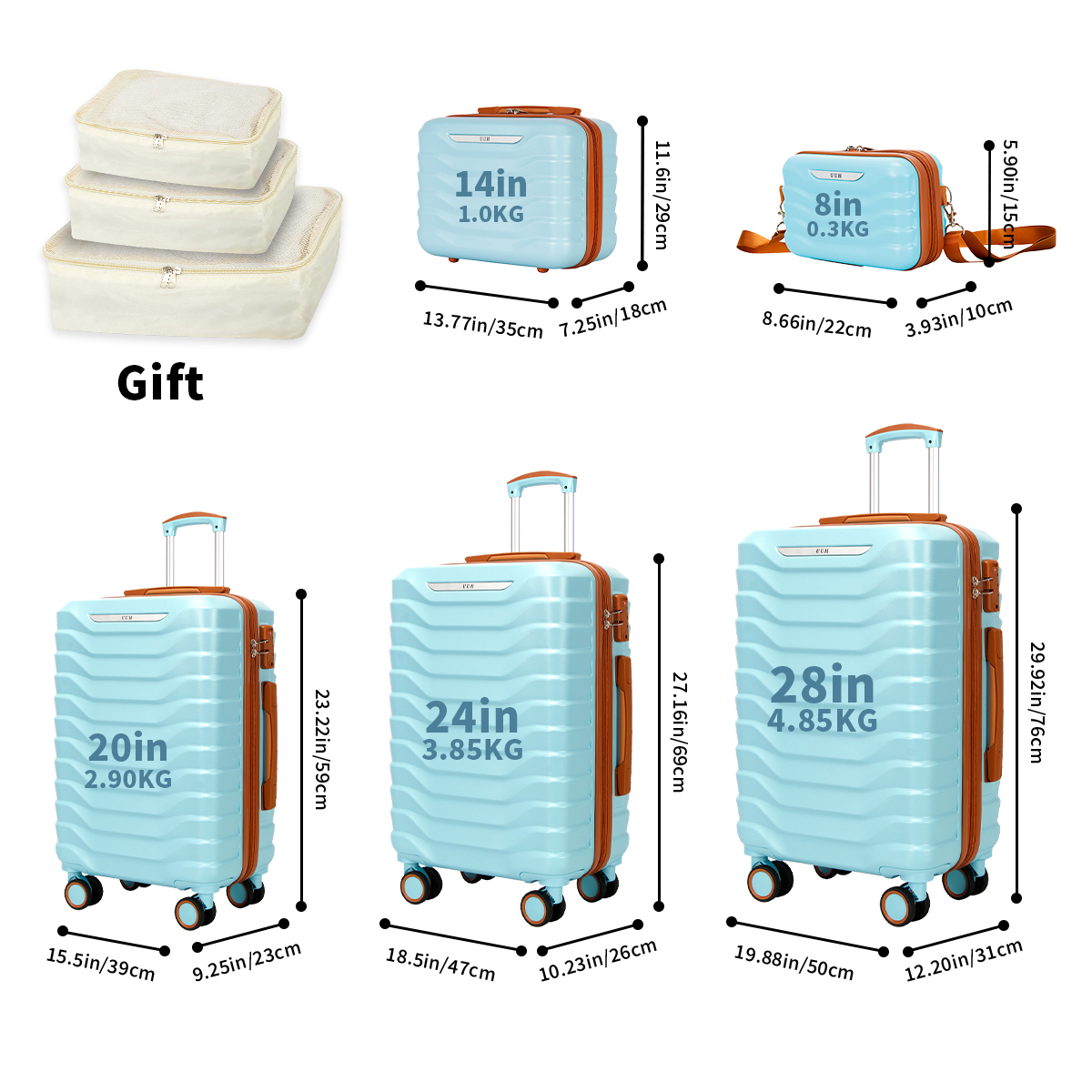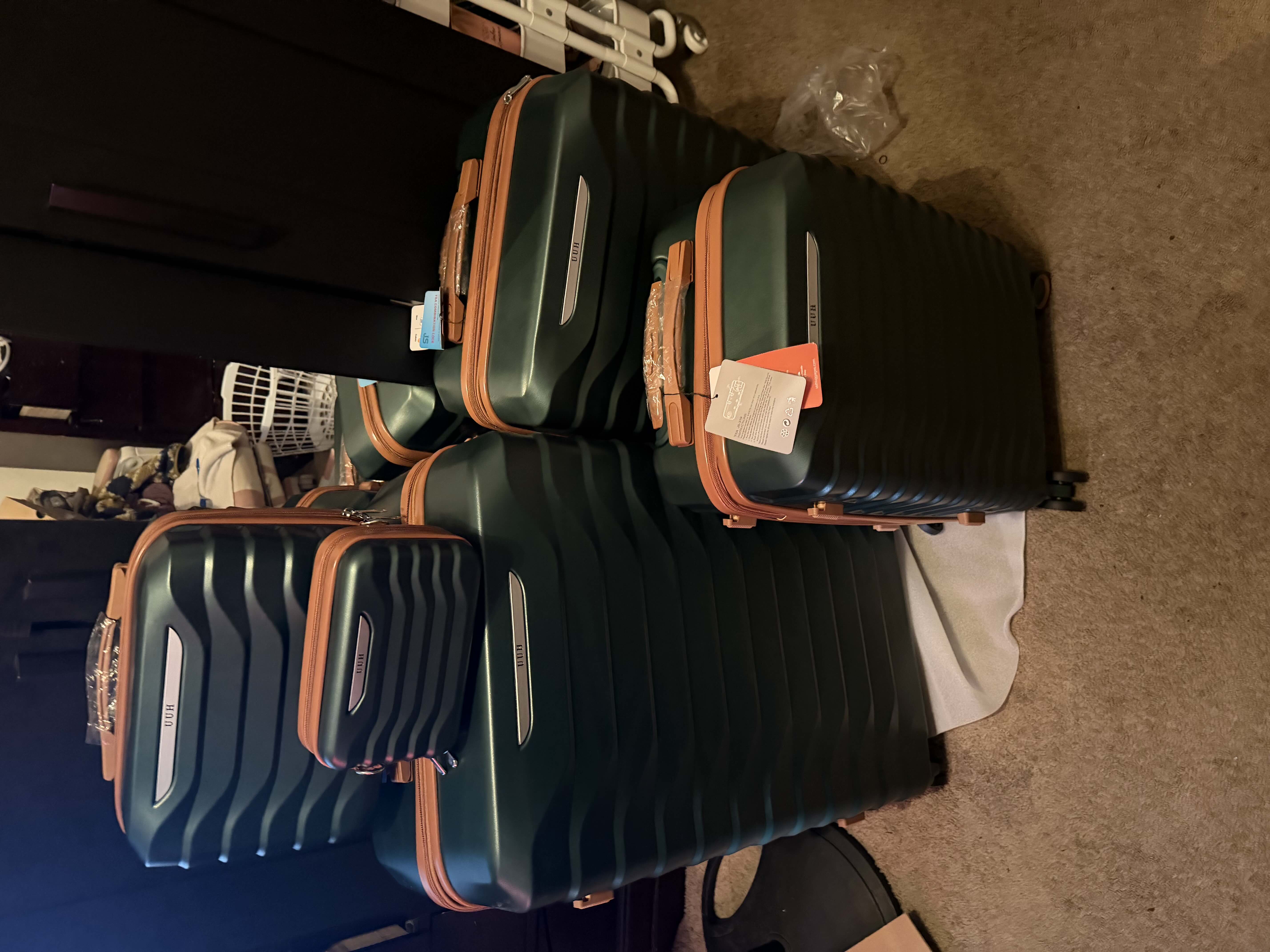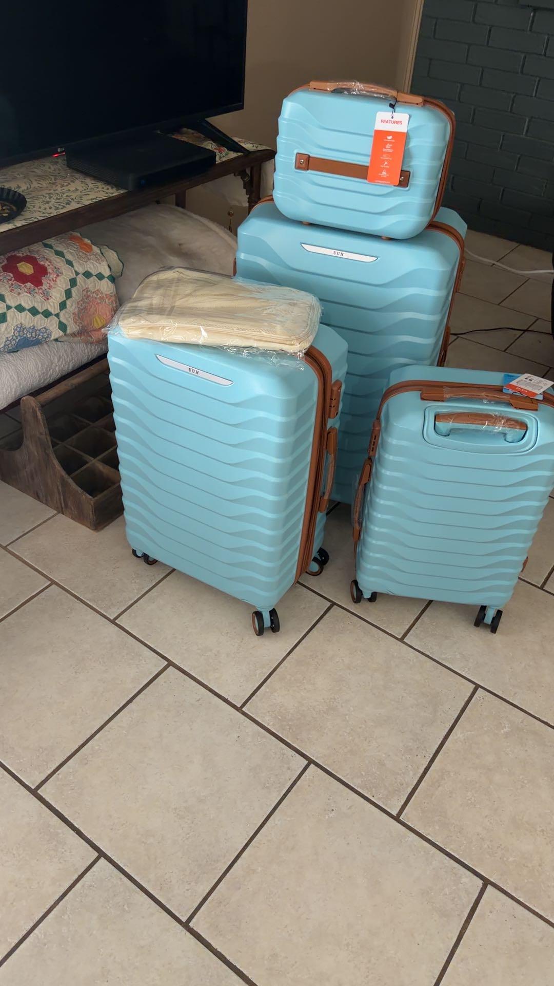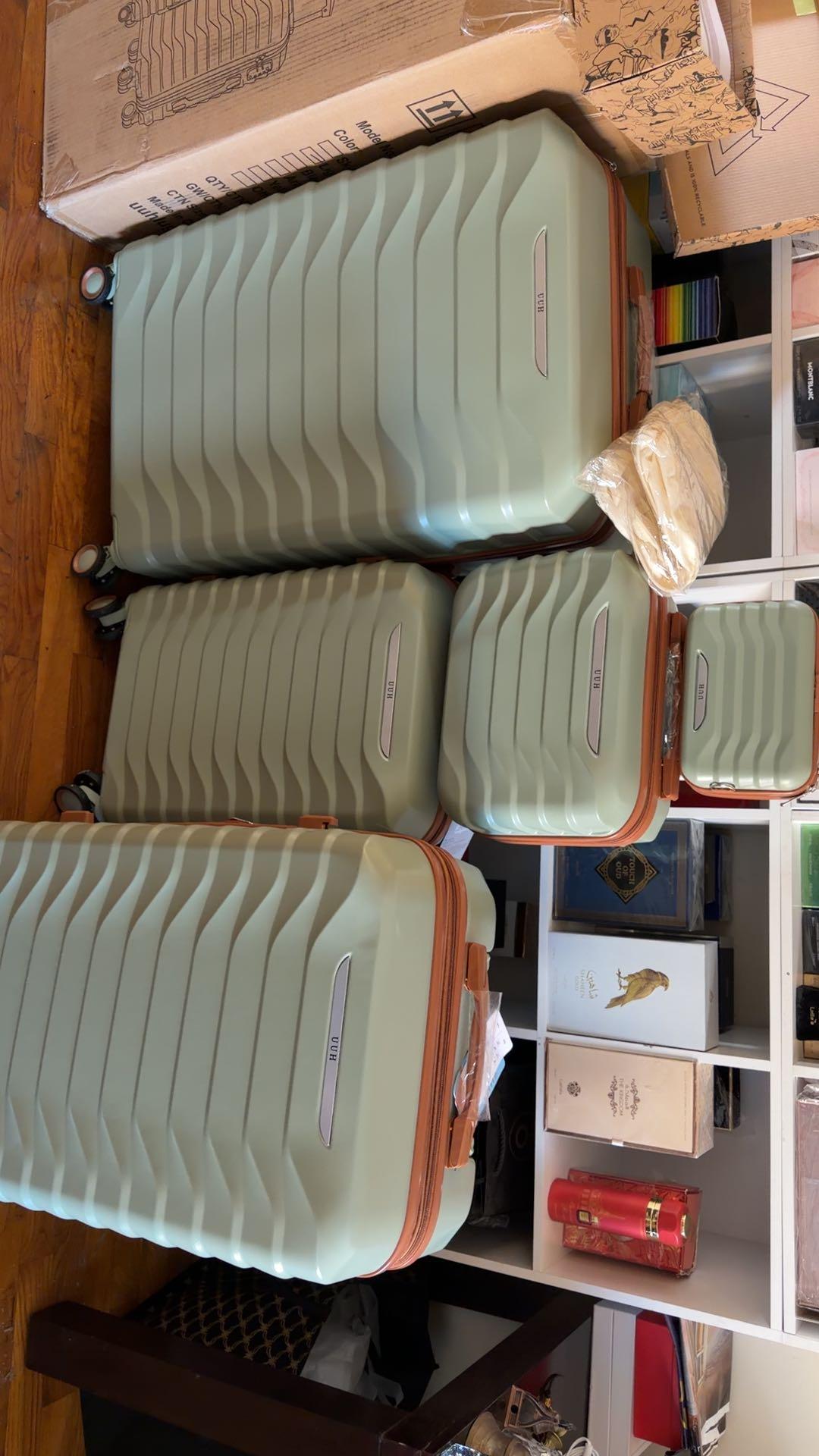 UUH Luxe - 5 Piece Luggage Set (8",14",20",24",28") Bags with 3 Storage and Makeup Bag
