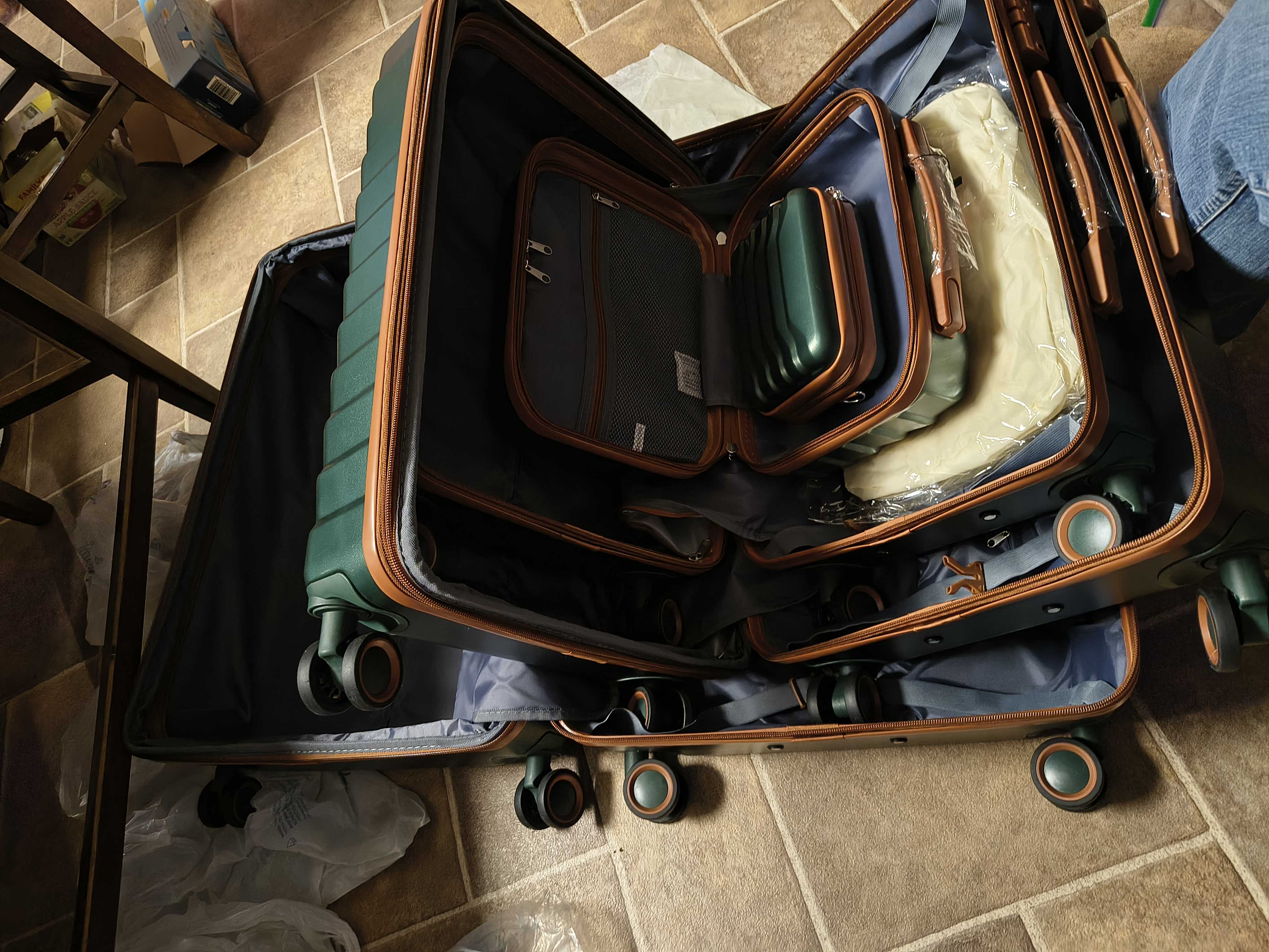 Capacity: I can’t believe how much you can put in the suitcases. I’m very happy customer. Material: Very strong Quality of work: Easy to manage
