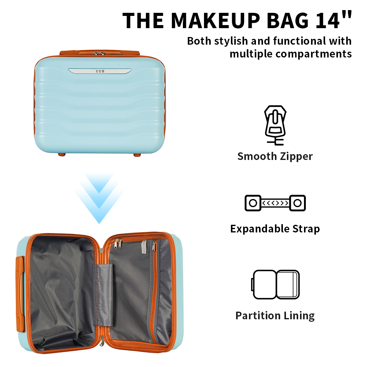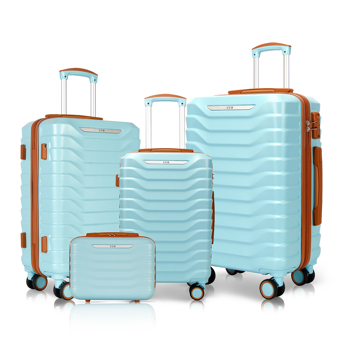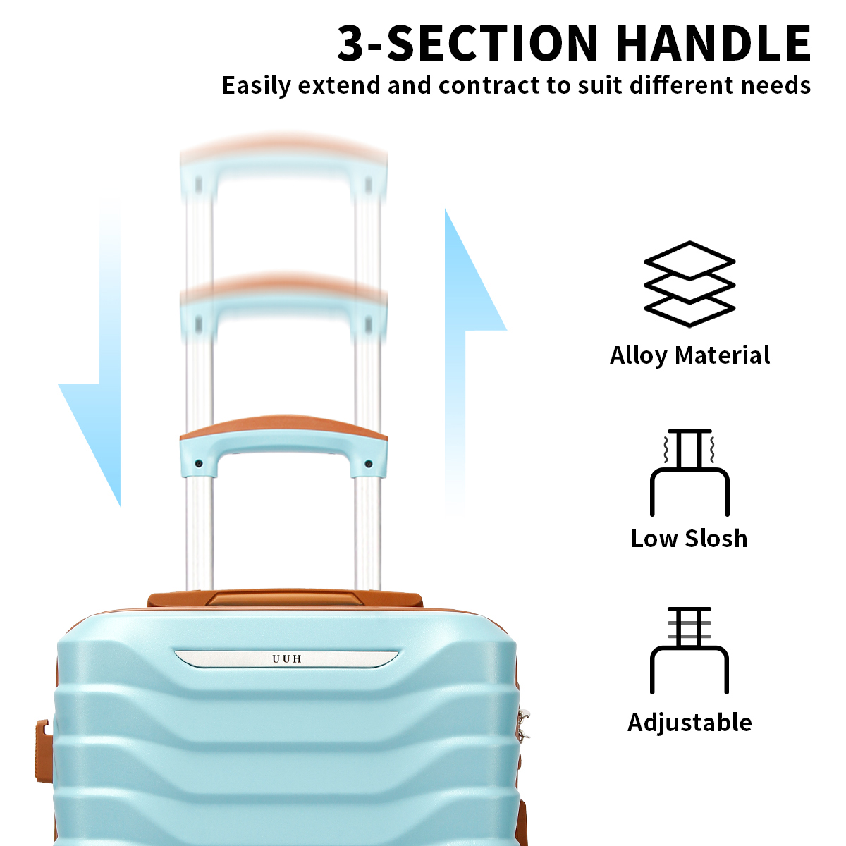 UUH's hard shell luggage, designed for travel, with small, checked, and large options. Each suitcase comes with additional storage and toiletry bags, perfect for your travel needs. The sturdy shell protects your belongings, while the lightweight design allows you to move with ease. Whether it's a short trip or a long adventure, UUH cheap luggage set is your ideal companion.