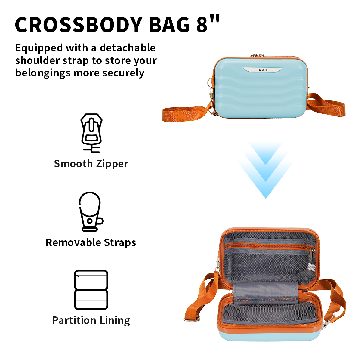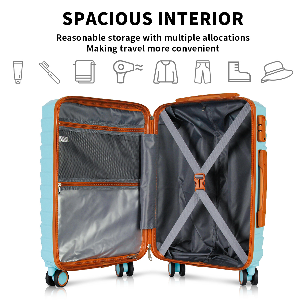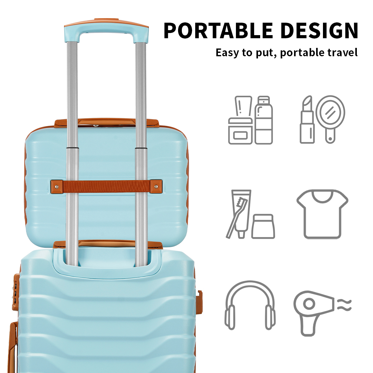 UUH's hard shell luggage, designed for travel, with small, checked, and large options. Each suitcase comes with additional storage and toiletry bags, perfect for your travel needs. The sturdy shell protects your belongings, while the lightweight design allows you to move with ease. Whether it's a short trip or a long adventure, UUH cheap luggage set is your ideal companion.