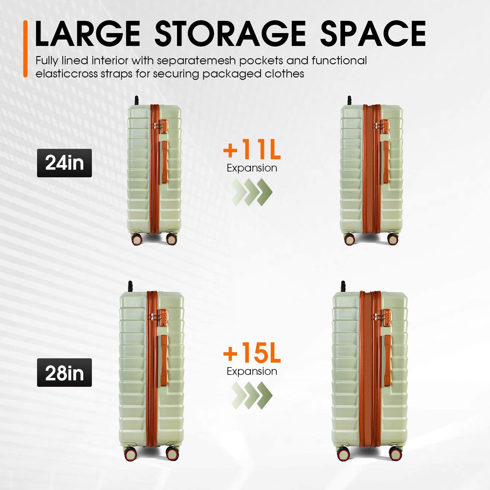 Spacious Interiors: Each suitcase features a fully lined interior with multiple compartments and tie-down straps to keep your belongings organized.