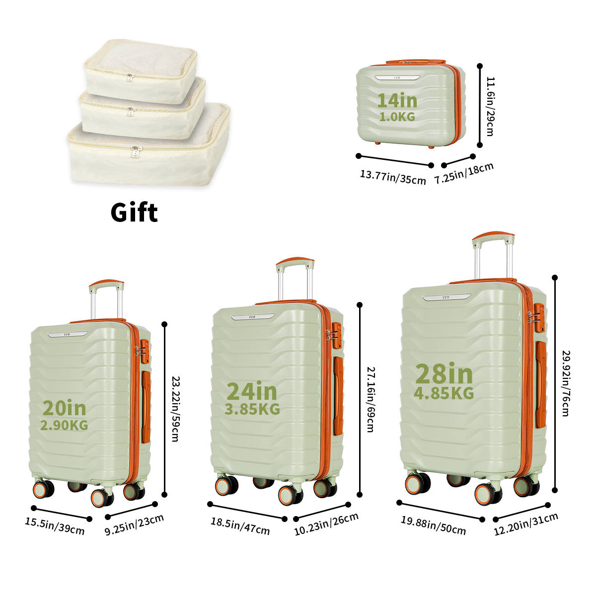Spacious Interiors: Each suitcase features a fully lined interior with multiple compartments and tie-down straps to keep your belongings organized.
